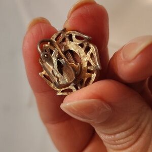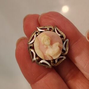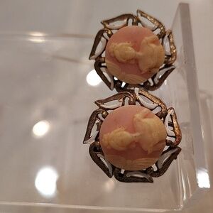 Cameo gold tone clip on earrings enamel paint accented vintage