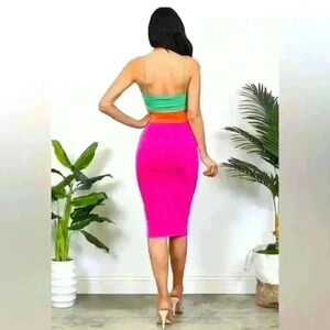 Cameo strappy pastel color block dress size medium cute for a club night out a date with stretch Are you ready to show off your curves you should have this in your wardrobe! BodyCon Sexy Beautiful Colors for this time of year
