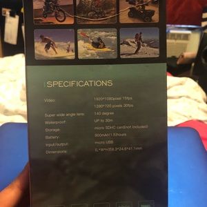 New never used action camera 30 meters waterproof, 2.0 inch screen, comes with all accessories (waterproof case, straps,user manual). Don’t know how good the picture quality is since I’ve never used it.