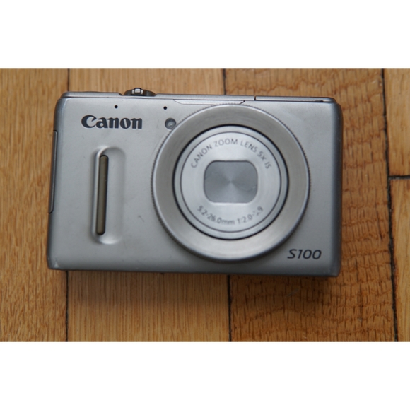 Canon PowerShot S100 12.1 MP Digital Camera. Requires an adaptor because it's a type G socket (Singapore).