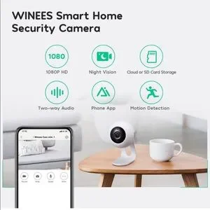 Winees Indoor Security Camera, Baby Monitor Wi-Fi Smart Home IP Camera with Motion Detection,2-Way Audio, 2.4GHZ, Night Vision, Multi Installation Cam for Pet, Baby Works with Alexa
