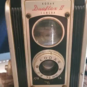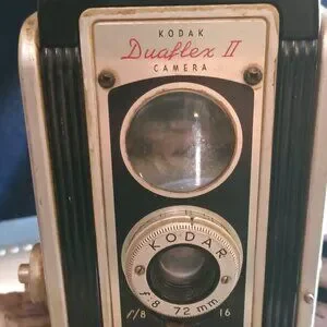 Capture timeless moments with the Kodak Duaflex II, a classic twin-lens reflex style box camera from the 1950s. This camera is an improved version of the Duaflex I and is designed for ease of use and affordability.