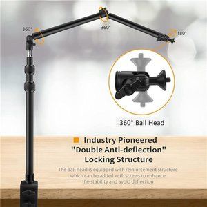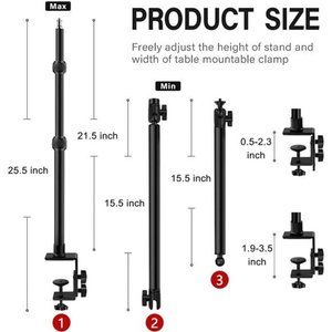 🧿【Adjustablement with Locking Knob】Adjustable Desktop C-clamp Stand: The size height could be extended from 16.7-40.1 Inch as you like. The ball head can ensure 360 degree horizontal rotating and from -90 degree to 90 degree tilting for panoramic photography when adjusting the angle. You can use the knob to adjust to the desired angle to meet your needs at different angles.