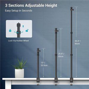 🧿【Height Adjustable】The desktop light stand is designed with 3 sections extending poles, with a height-adjustable from 19"-39" / 48.5cm-100cm(Note: height with ball head and C-Clamp), which provides the possibility for any overhead shootings and lightings. A rubber ring wingnut helps you to fix the pole easier.