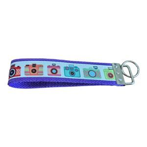 These wristlets feature cameras in multiple colors, they're perfect for photography lovers. The purple cotton webbing coordinates nicely and adds a nice pop of color. The hardware and keyring are silver in color.