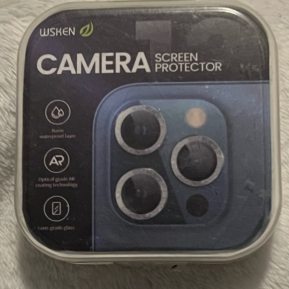 Wsken camera lens protectors for iPhone 12 max pro (6.7 inches). Has over 3,600 reviews with 4.4 out of 5 ⭐️. Never opened since I upgrade to the iPhone 13. Sparkling Silver color.