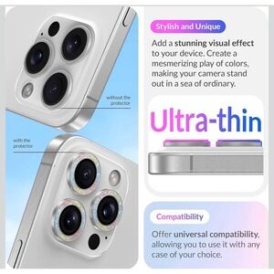 LONLI - for iPhone 16 Pro | 16 Pro Max - Triple Individual Camera Lens Protector - Rainbow Holographic Glitter