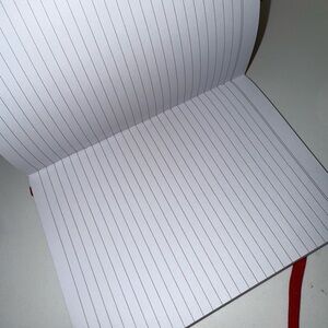 Bright red notebook featuring an elastic closure. Ideal for notes and journaling.