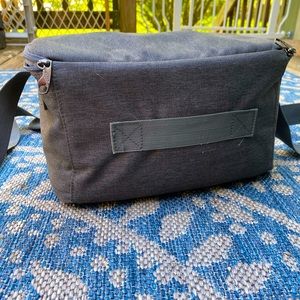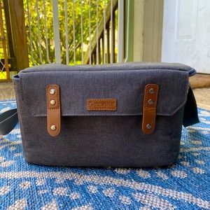Very gently and rarely used camera bag. Nice grey with the brown clasps, adjustable padded shoulder strap. It comes with two Velcro dividers inside as well as the three netted pockets up top for extra storage (SD cards, batteries, etc). I love this bag but I have too many and often need a larger bag for shoots, i would like if it could go to someone who would use it more!