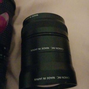 Camara bundle sale one flash needs batteries. 4 lenses the last long one may have damage it was given as a gift so not too sure everything else works well