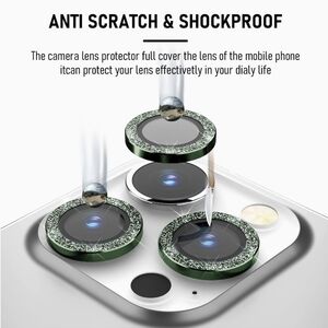 Camera lens tempered glass protector Glitter Green for iPhone 13 Pro, 13 Pro Max