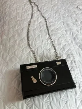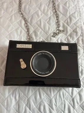 Camera purse great as a clutch or with silver chain strap