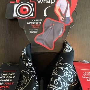 Serves as a camera strap which morphs into a compact and padded camera carrier.