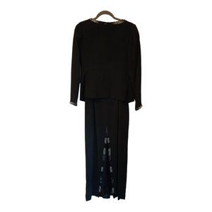 Cameron Blake Black Formal Evening Gown With Jacket Size 12/ 14 Beaded Dress