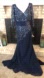 Cameron Blake Navy Blue Double V-Neck 3/4 Illusion Sleeves MOB Dress size 12