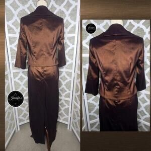 Cameron Blake by Mon Cheri Brown 2-Piece Taffeta Sleeveless Dress and Jacket 8