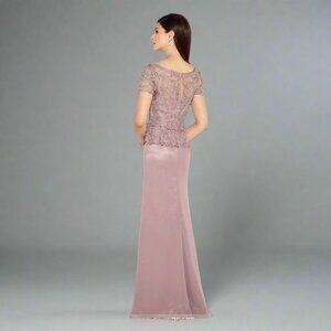 From Cameron Blake, this pretty gown is a great color to coordinate with so many other wedding colors. Dubbed "mink" by the manufacturer, it is a soft blend of blush and mauve. The illusion bodice is covered with soutache embroidery and sparkling tone-on-tone beads. Chiffon skirt is full and flowy. Brand new, with tags. Style 117609W. I am a top-rated seller and ship quickly!