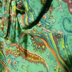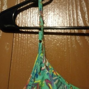 Teal blouse with colorful print, light flowy fabric and adjustable straps