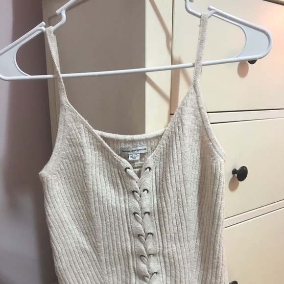 This is a cute cami, a little weight to it and can be pretty warm. Good for spring and fall! Lightly worn once or twice and washed.