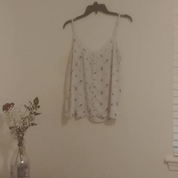 A spaghetti strap that you can wear in the spring and summer that is perfect for every situation. While this white one is a little see though another shirt on underneath wouldnt harm anybody. This shirt has been worn once and has no tears or stretches. It also has elastic under your arms and going around to your back.