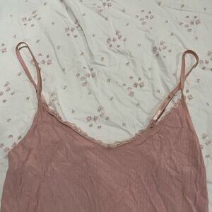 Y2K core ribbed pink cami top with lace trim at the top Wrinkled from storage but barely worn and in great condition!