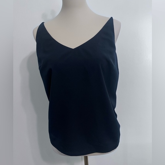 Vneck cami w/ adjustable straps. Length 16 1/2”. Pit to pit 19 1/2”. 100% Polyester.