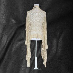 Cami Boho Crochet Cardigan Cream High Low Open Front Lace Knit Festival Duster M