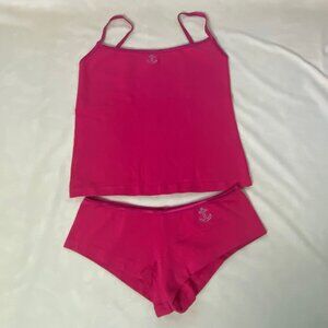 Boyshort size is marked 2 and camisole size is marked medium, but they're both very small.