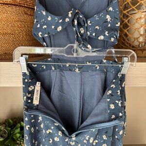Strappy open back, cut-outs at waist, peekaboo slits in front of pant legs, fully lined to shorts length, zip back, adjustable top.