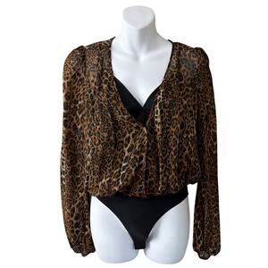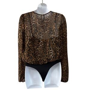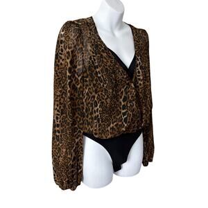 Cami NYC Isa Leopard Silk Bodysuit Blouse Top Size Medium