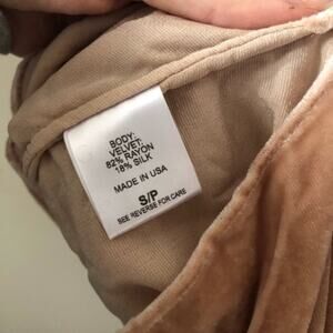 In good condition, NWOT. A cute peach velvet tank top. Silk blend.