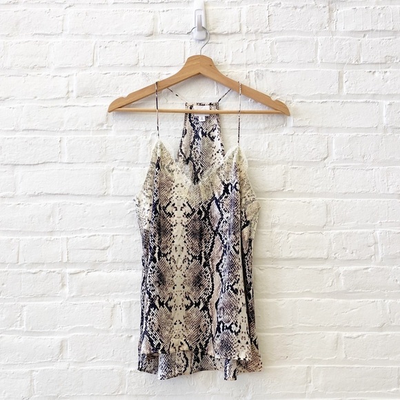 Cami NYC || Racer Tank Silk Lace Camisole Cleo Snake Print Black Cream Small