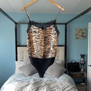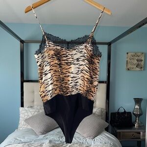 Cami NYC Sweetheart Silk-Blend Lace Camisole Bodysuit Thong Back Mob Wife Tiger