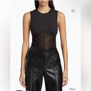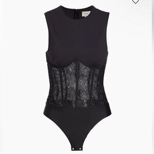 Cami NYC Yazia Semi-Sheer Lace-Trim Bodysuit corset bustier black Revolve 12