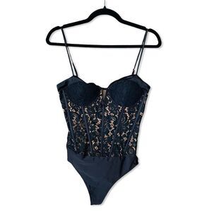 Cami NYC Anne Corded Lace Bodysuit Black bustier boned top corset Revolve