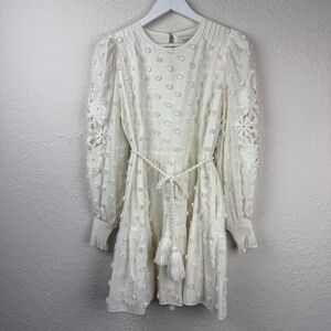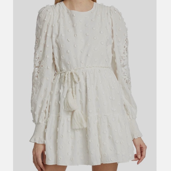 Cami Nyc Womens White Floral Appliqué Long Sleeve Cotton Carolina Mini Dress XS