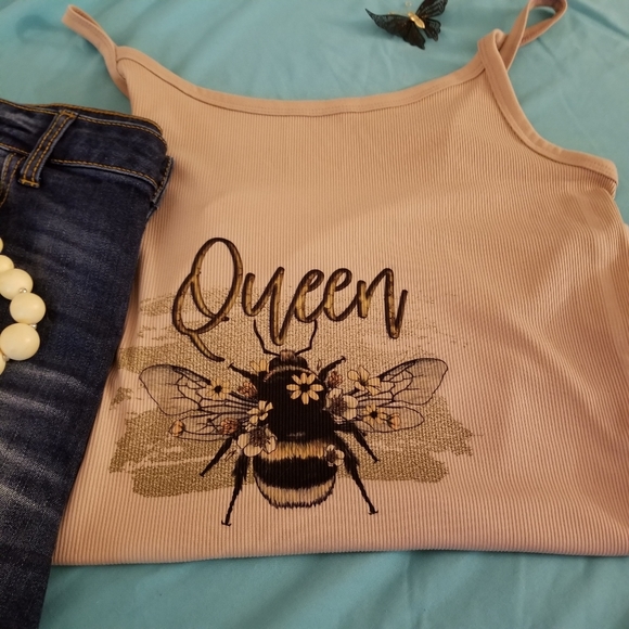 Queen Bee rib cami XL. New custom decorated. In the picture only the cami is for sale. The white back cami is for show.