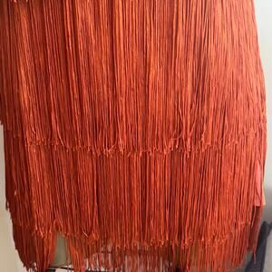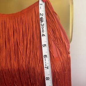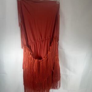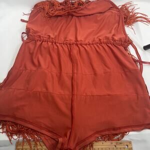Cami String Halter Romper Jumpsuit Burnt Orange Women's Large Sexy Costume Cute. Nice condition. Approx measurements of romper: Chest: 15. Waist: 14" can be stretched to 21". Hips: 18". Crotch: 13". Length of shorts: 23". Length of entire outfit: 29". Do same day or next day shipping.
