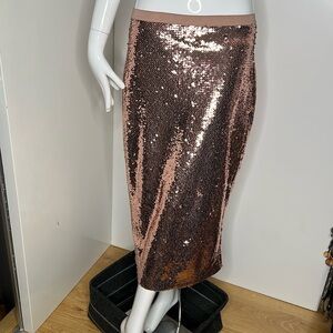 Cami Sz M Sz 6-8 Rose Gold Sequins Zip Back Elas Band Waist 31” long Skirt