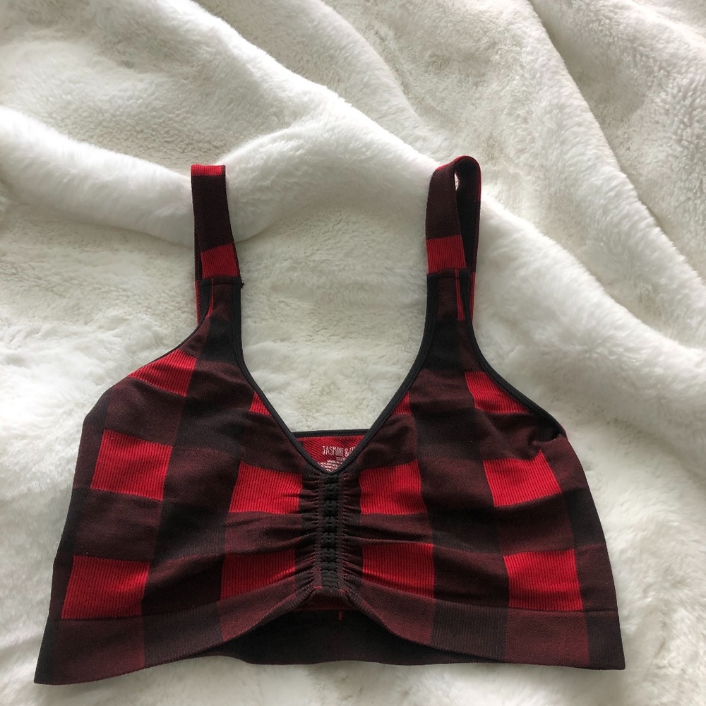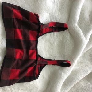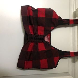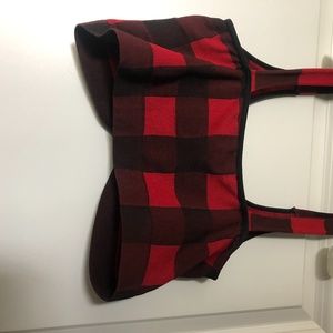 Red plaid style cami style shirt made of polyester, nylon, and spandex from the Jasmine and Ginger collection from Dillards