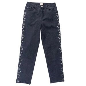 Camila Coelho Crystal Detailed Denim Jeans Black High Rise NWOT