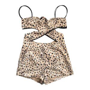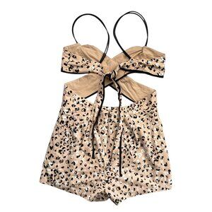 Camila Coelho Elisa Linen Leopard Print Cutout Romper Pink XL Coastal Beachy