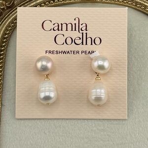 Elegant and timeless, these double-drop earrings feature lustrous freshwater pearls set on delicate gold-tone posts. The classic design combines sophistication with versatility, making them perfect for both everyday wear and special occasions.