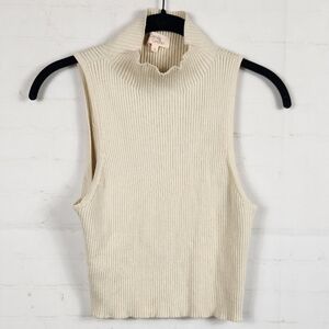 Camila Coelho Revolve Chic Summer Basic Mock Neck Ribbed Crop Top Cream Large