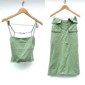 Camila Coelho Rousseau Set Linen Cargo Skirt Backless Shirt Y2K Small Sage Green