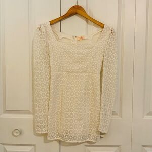 Camila Coelho Trista Ivory Lace Crocheted Long Sleeve Mini Dress Small
