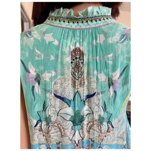 Camilla 2-Button Floral Print Sleeveless Dress - Turquoise Crystals Size XS