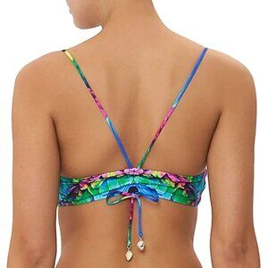 Camilla "Age Of Asteria" ruched-back bikini top brings the rainforest to life with a vibrant tropical print.