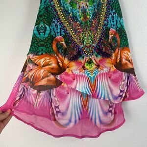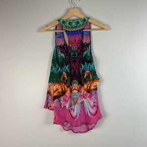 Camilla Awakened Utopia Flamingo Layered Silk Top Size 1