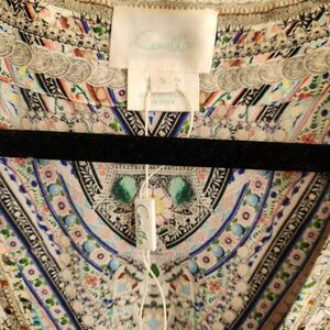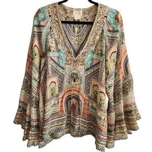 Camilla Blouse Top Womens Small Oversized Bell Sleeve Boho 100% Silk Rhinestones $600 Retail